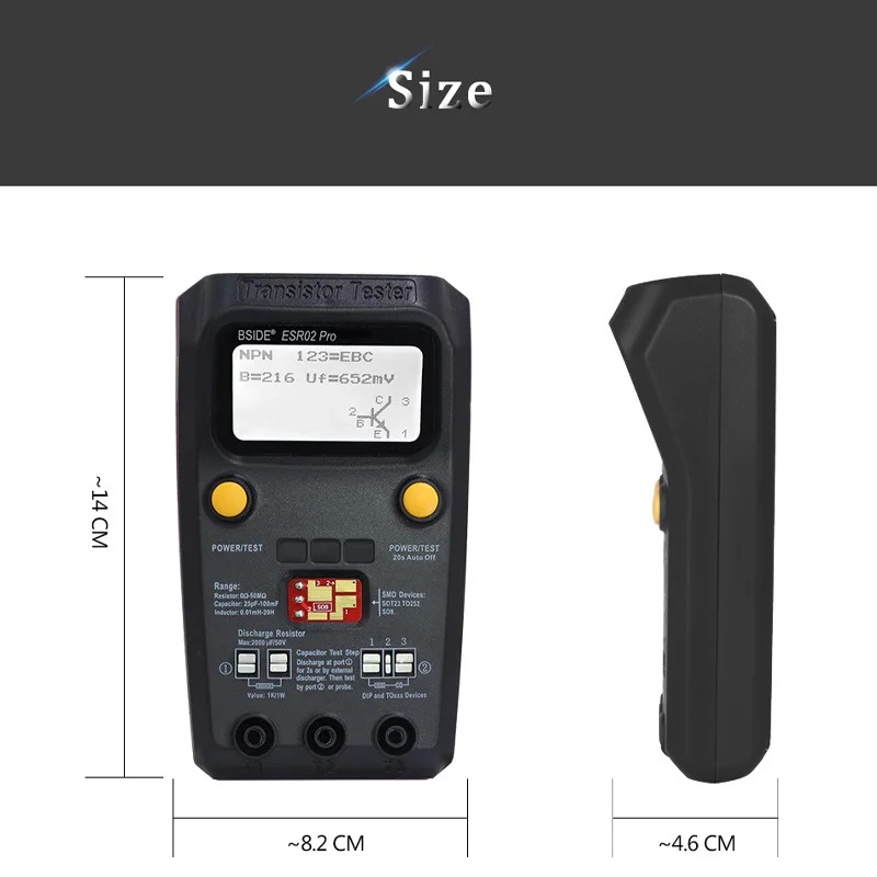 – Измерение ESR конденсаторов 2мкФ - 50мФ / Разрешение: 0.01 Ом