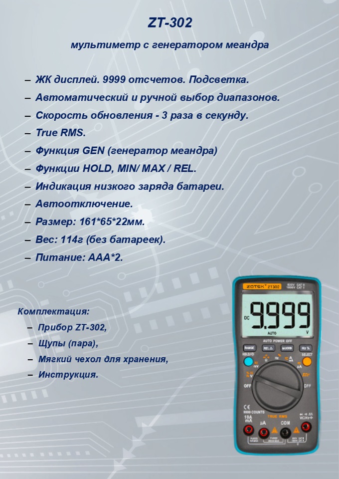Инструкция по эксплуатации мультиметра ZT302