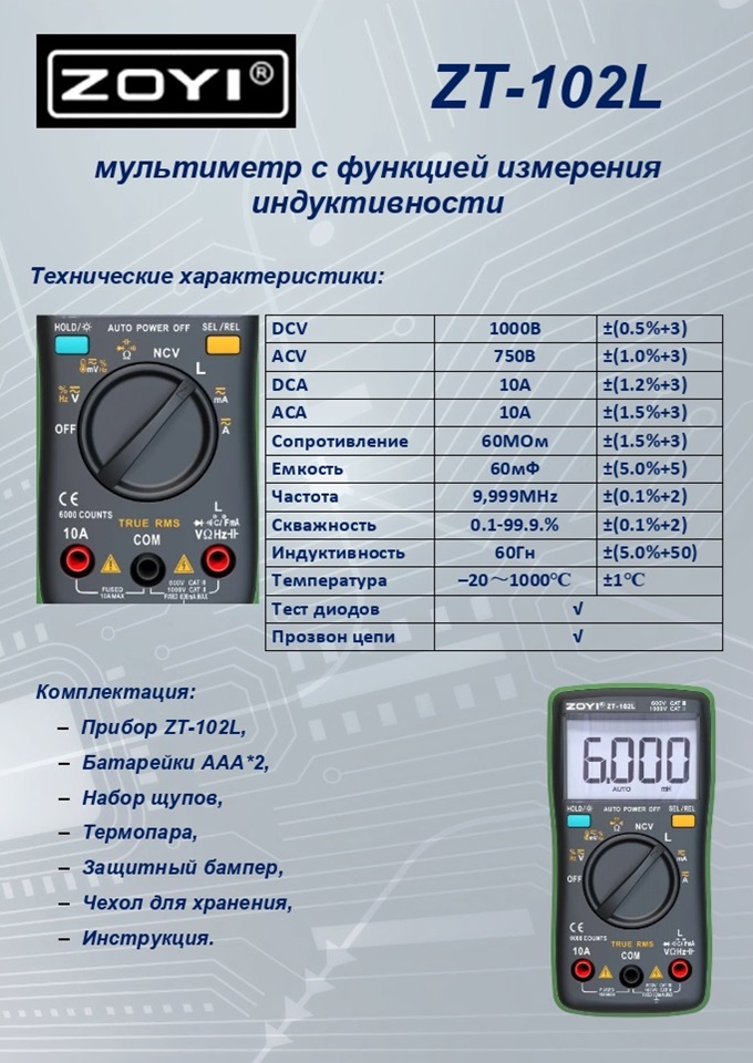 Индуктивность: 6.000mH ±(5.0%+50)/ 60.00mH/600.0mH/6.000H ±(3.0%+10) /60.00H ±(5.0%+50)