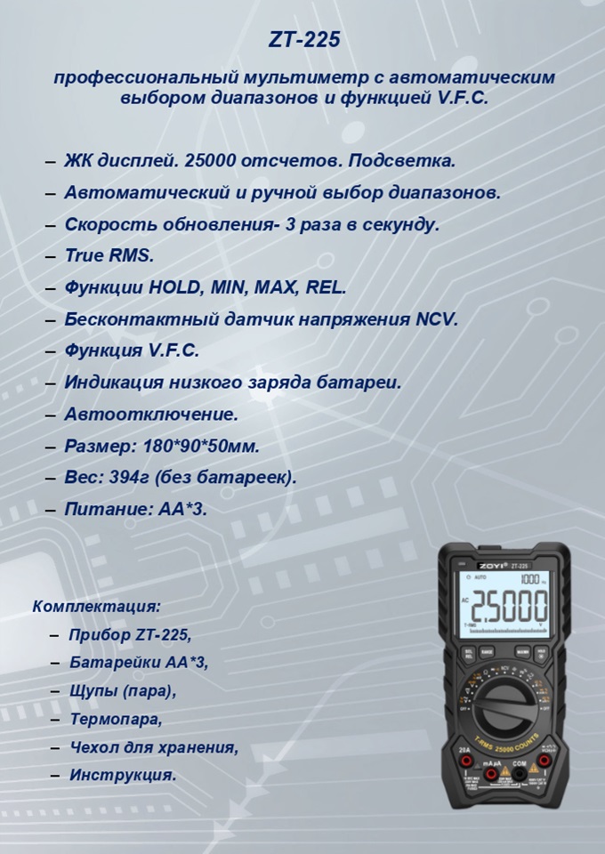 мультиметр ZT-225 Щуп для измерения температуры Комплект измерительных щупов Комплект батареек Чехол |
