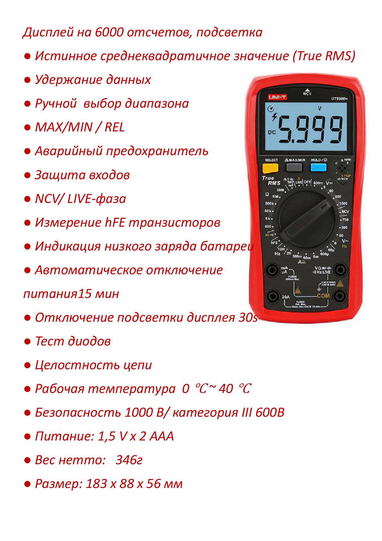 ● Дисплей на 6000 отсчетов, подсветка