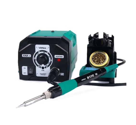 – очиститель паяльных жал (латунная стружка) с канифолью, губка для очистки, поддон для остатков с защитным краем;