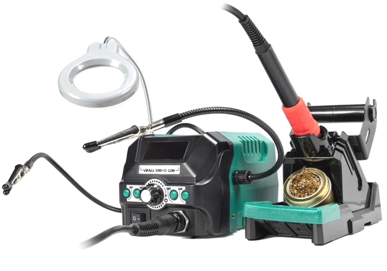 штатив с лупой ("3-я рука"), держатель платы, держатель припоя, ESD |