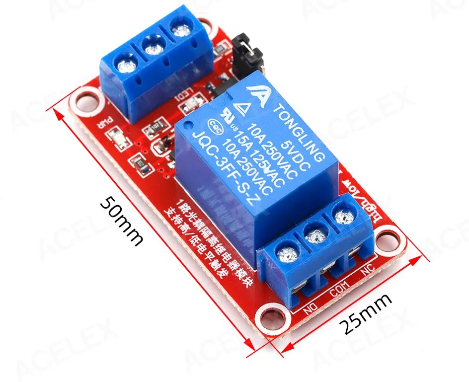 Модуль позволяет прибору с питанием 5 В управлять одной нагрузкой под напряжением 220 В переменного тока. Имеет возможность выбора уровня управляющего сигнала (низкий/высокий) с помощью перемычки.