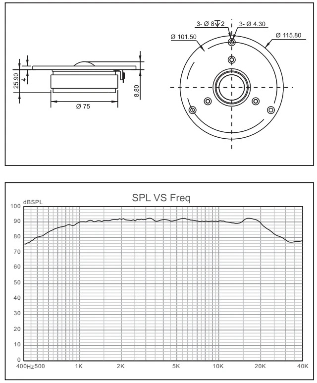 – Корпус из термостойкого алюминиевого сплава, звуковая катушка из алюминиевой проволоки, покрытой медью, с большим допуском по мощности.