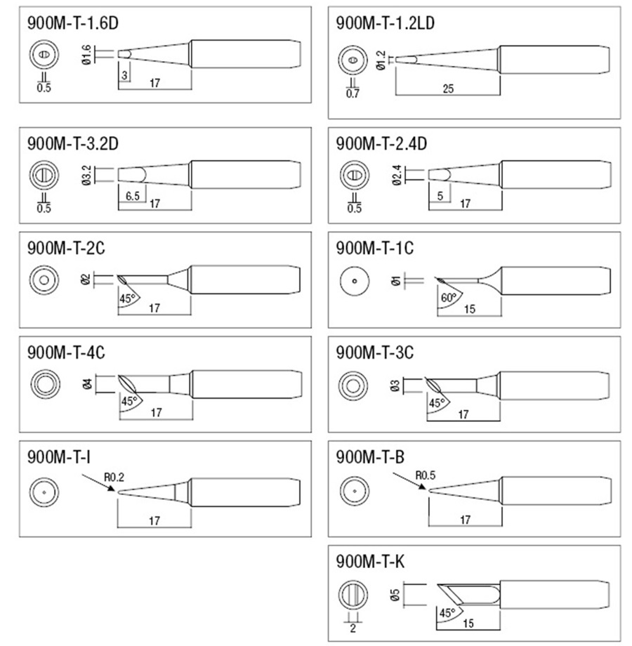 Сменные жала серии 900M-T-2,4D для паяльников YH-907 и паяльных станций с этим паяльником. Также жала совместимы с HAKKO, LUKEY, ATTEN, AOYUE и другим брендами.