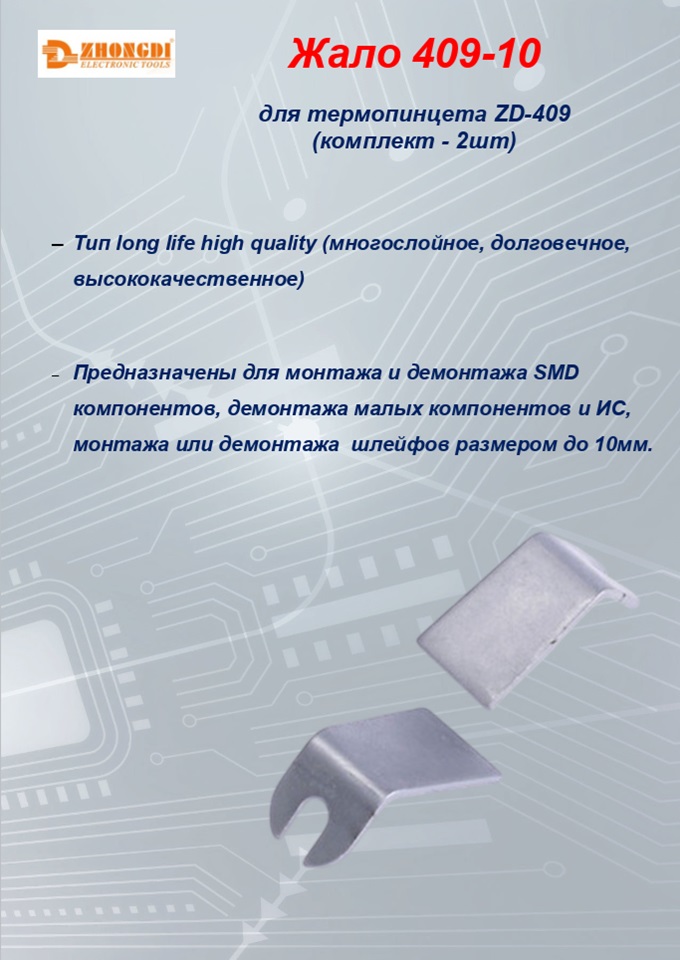 Предназначены для монтажа и демонтажа SMD компонентов, демонтажа малых компонентов и ИС, монтажа или демонтажа шлейфов размером до 10мм.