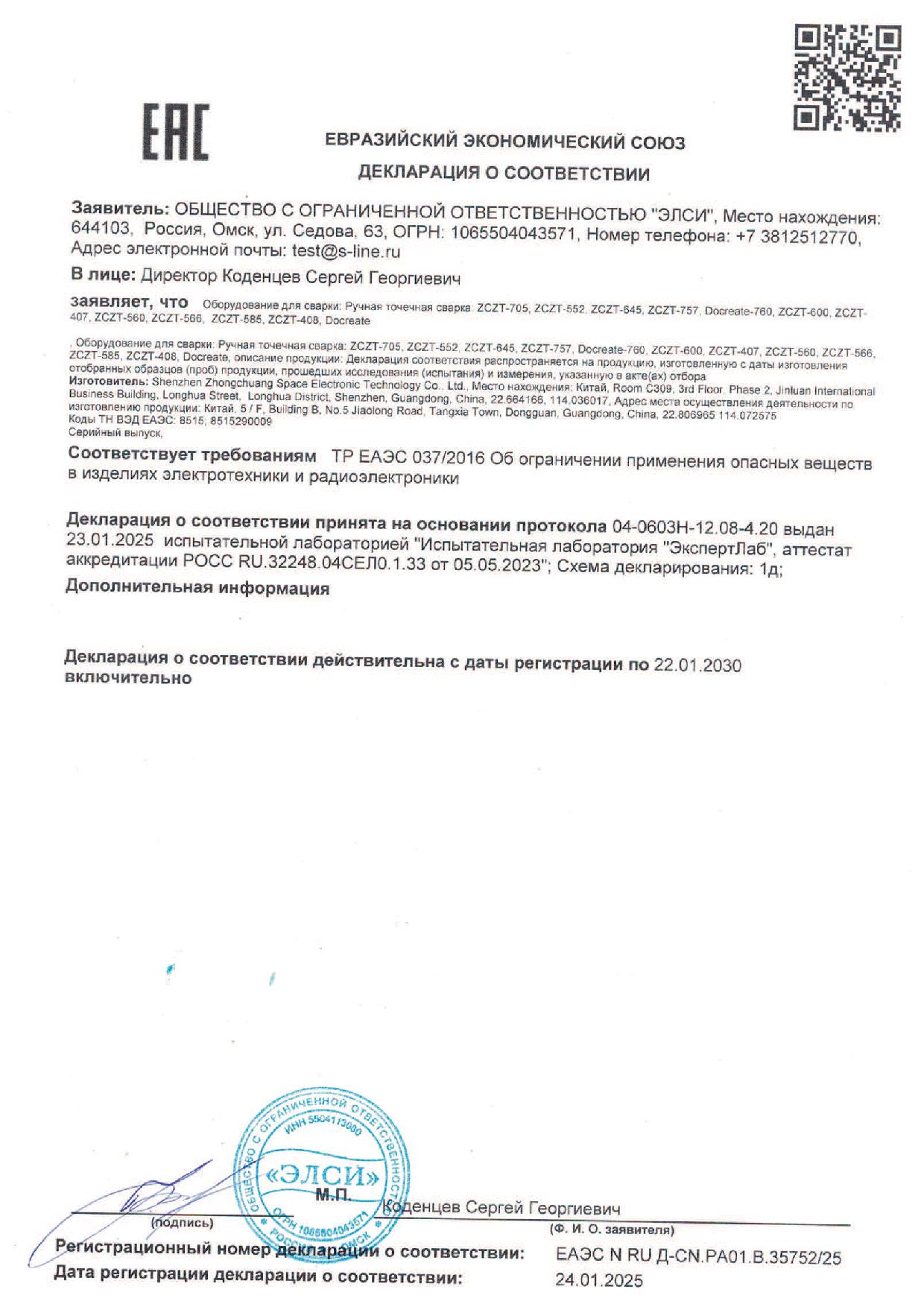 Декларации соответствия , ДС на мультиметры, паяльное оборудование, источники питания, таких производителей как Zhongdi, Yihua